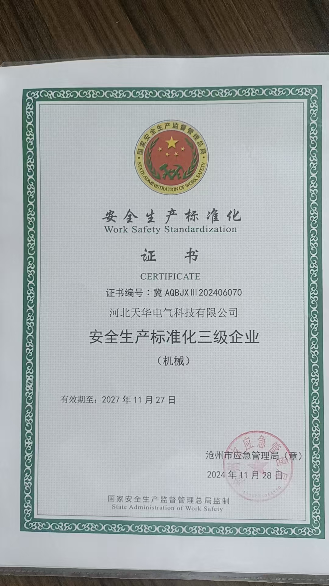 安全生產(chǎn)標(biāo)準(zhǔn)化三級(jí)企業(yè)