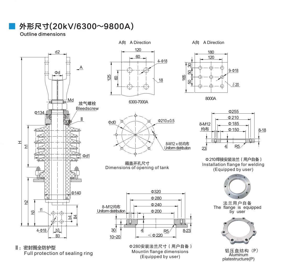 20kV/6300~9800A鏟形連接套管