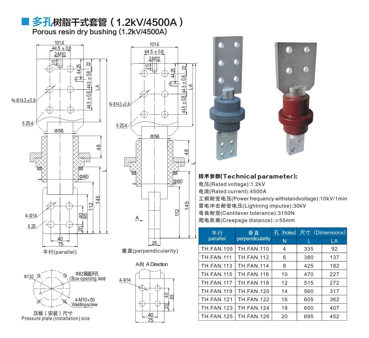多孔樹脂干式套管1.2kV/4500A