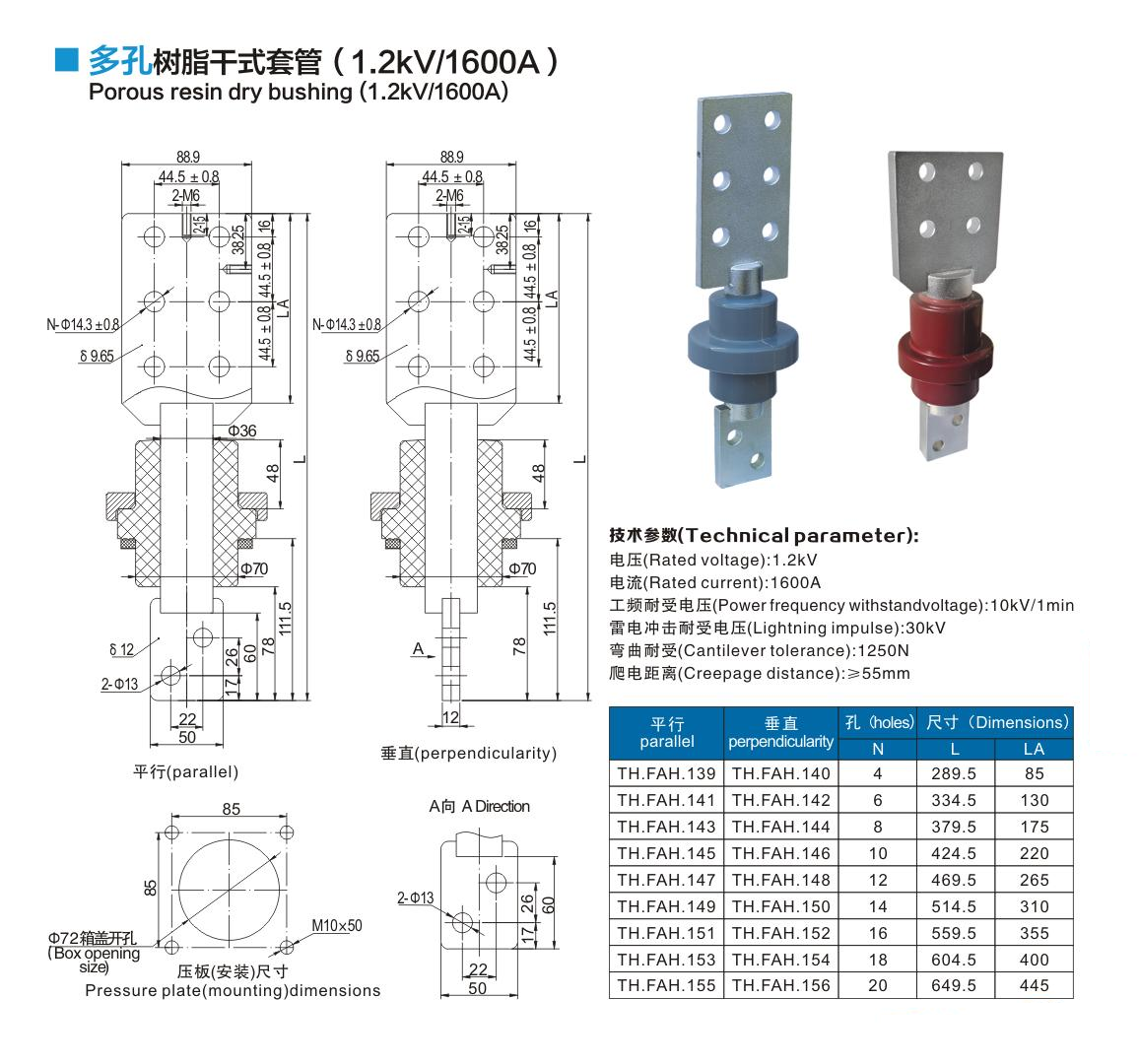 多孔樹(shù)脂干式套管1.2kV/1600A