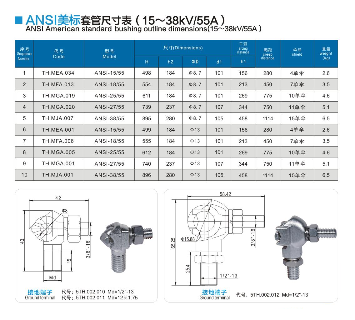 ANSI美標(biāo)套管15~38kV/55A
