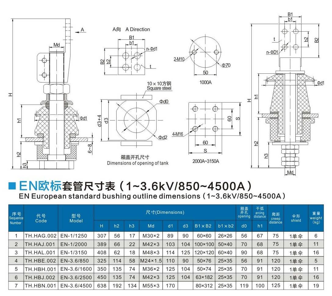 EN歐標套管1~3.6kV/850~4500A